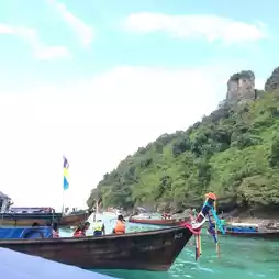 Ao Nang is a famous beautiful beach in Krabi province. Most tourists like to stay here because it is a beach with a lot of accommodations to choose from, starting from hundreds to tens of thousands. There are many shops and beautiful sea views. It is also a point for boats to go on a one-day trip to various islands, including Chicken Island, Poda Island, Tub Island, Talay Waek, Hong Island, Phi Phi Island, and many others. At the end of the beach on the left is a limestone mountain separating Ao Nang Beach and Railay Beach. #thailand #missnature