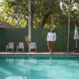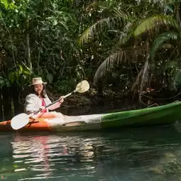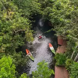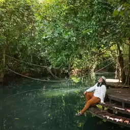 . #TravelKrabi This trip, Moo came to relax and find the monkey #blumonkey with #soul-sucking bed, along with the green trees surrounding it to make you feel refreshed. Play in the clear emerald water canal of the hotel's elephants. The water is clear and cool. You can kayak or float on a rubber ring, jump in the water, sleep in a hammock by the water, and if you're bored, you can sunbathe or play in the pool