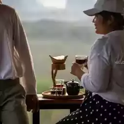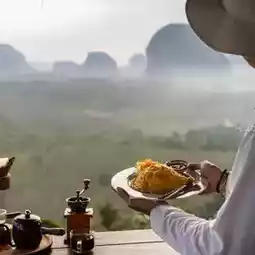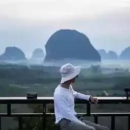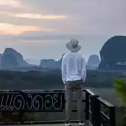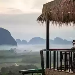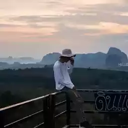 On the other side, there is a distant sea on the Phang Nga Bay side, which overlooks Koh Yao. It can be said that coming to one place, you can see two views... Since you've already made it up there, don't forget to order some drip coffee as a prop for taking beautiful photos. It actually feels like we're going to Nan or Magic Mountain in Phayao. Haha... If anyone comes to visit Krabi and is tired of going to the sea, wake up early and come to drip coffee and watch the fog at "Din Daeng Doi". People of all ages and genders can come here, it's not dangerous.