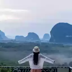 Din Daeng Doi, a sea of mist viewing point in Krabi Province, is located in Nong Thale Subdistrict, Mueang Krabi District, not far from Ao Nang. It only takes about 15 minutes to drive there. ... This place is not very high. When you reach the car park, you can choose between walking up or using the shuttle service for only 50 baht. You can also use a coupon to get a 10 baht discount on food and drinks. For those who want to walk up to test their strength, there are stairs to walk up. Of course, we chose to take a car up. 😆 It's like supporting them.