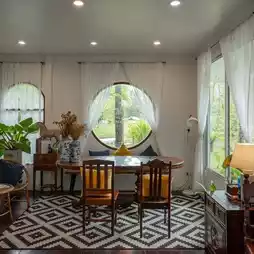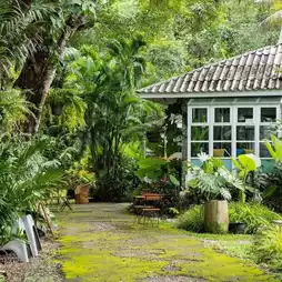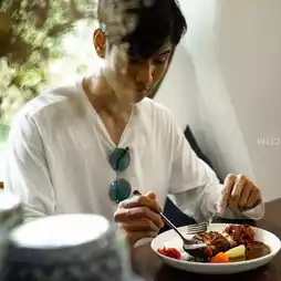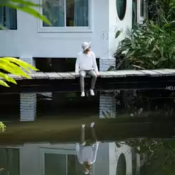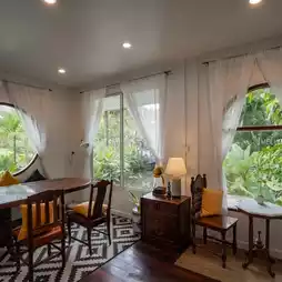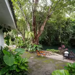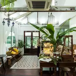 A classic house cafe surrounded by large trees, shady. Just seeing the green is pleasing to the eyes. The shop is not very big. The inside is airy, with glass all around, good light, and air conditioning. But we recommend sitting outside because it is more refreshing. There is a clear emerald stream flowing slowly, making you feel refreshed. It is even more beautiful in the afternoon.