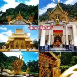 2. Wat Wat Khao Hua Sing, a golden church next to a limestone mountain