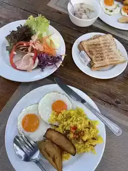 ✅Breakfast, a lot of variety, salad, fried rice, rice soup, bread