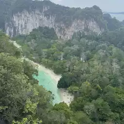 Koh Hong is located in the Tharbog Khorani National Park. It is also known as Koh Lao Bi Leh. It is very beautiful and surrounded by blue sea water. There are corals and sea fans around the island. It is a bay with a curved beach in the shape of a bird flying. The sand is fine and white. The sea water is clear and emerald green. There are schools of small fish swimming all around. 🔸A beautiful shallow coral reef diving spot that has been ranked as one of the 10 islands with the cleanest and most beautiful beaches in the world. 🔹In addition to the diving zone, there is also a hiking zone to see the scenery and see the island in 360 degrees. ✳️It is recommended to get fit and wear good shoes that support walking.