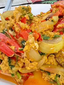 Enjoy eating and enjoying fried crab at Pu Dam Restaurant, Krabi.