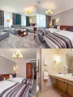 🛏️ Amenities: The hotel offers a full range of amenities, including an indoor pool, sauna, and spa. Guests can relax and enjoy the spacious rooms and elegant decor.