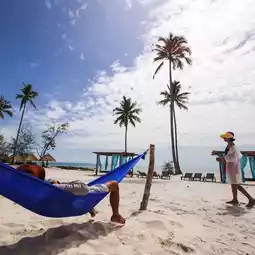 Sihanoukville is a famous seaside resort town for Cambodians, especially Koh Rong. In this post, I will take you to get to know the neighboring sea along with a review of accommodation in the middle of Koh Rong. It feels like visiting Koh Samet but with a little more peace and privacy. The white sandy beach, clear water, and the sky here is very beautiful when taking pictures of the sea. In the evening, during the sunset, the light is beautiful and romantic.