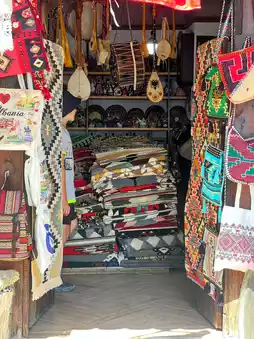 The Krujë Old Bazaar is one of the oldest bazaars in Albania, located on the way to Krujë Castle. Walking along the cobblestone streets, you'll find traditional wooden shops lining both sides, selling embroidered carpets, pottery, jewelry, antiques, and various other crafts.