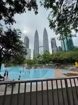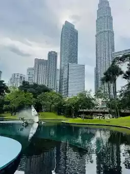 The park boasts a stunningly designed landscape that seamlessly blends lush greenery, water features, and modern architecture. As you walk around the park, you will be able to take in the breathtaking views of the Petronas Twin Towers, which tower above the park's serene surroundings.