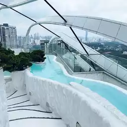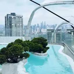 AMI Suites is located in Mont Kiara and conveniently located near the Publika Shopping Mall. Parking are available for hotel guests and this is an added advantage. The check in policies is a bit strict as rooms are only available at 3pm sharp and check out at 12 pm sharp. Services are limited as well. There are 3 pools available but all three pools are not connected and not conveniently located. Room is not spacious but has all the amenities needed and fit for a small family stay.