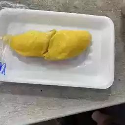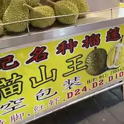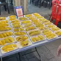 Here, there are many types of food stalls lined up, and there is a particularly wide variety of juices and fruits. They sell pre-packaged #durian here. The cheapest ones are 10 ringgits (300 yen).