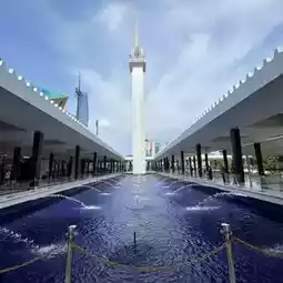 The National Mosque of Malaysia has specified hours for tourists. I visited in the afternoon at a little past 3pm. Staff will hand visitors a purple robe to cover up if required to adhere to the dress code. The mosque was very spacious, airy, and peaceful, and I could also see nice views of the surrounding buildings. The architecture is more modern, and the mosque serves as a symbol of national unity.