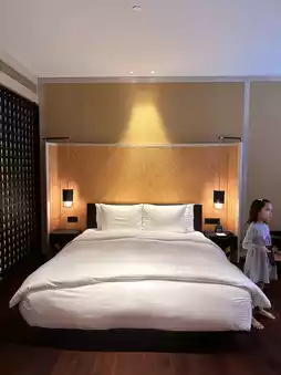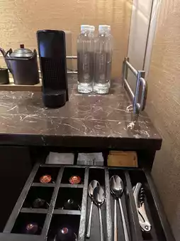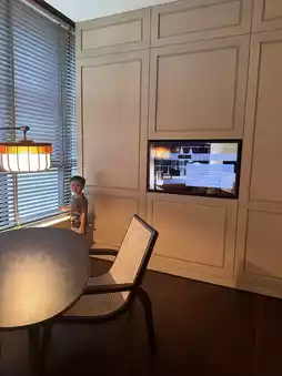 The room is equiped with a comfortable working desk and sofa bed. The coffee machine that help me staying up late and a nice soaking tub when i felt tired and need to rest.