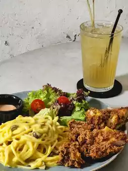 The straightforward menu at Leaf & Co mostly consists of variations of chicken dishes (creamy butter cream chicken, nasi lemak curry chicken, lemongrass chicken) as well as salads, pastas, sandwiches and beef stew.