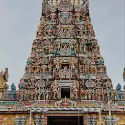 The Sri Kandaswamy Temple, also known as the Batu Caves Temple, is a famous Hindu temple in Kuala Lumpur, Malaysia. It's known for its striking golden statue of Lord Murugan at the entrance and its stunning architecture.