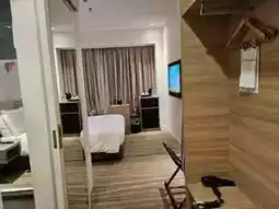 I got this room for $50+ a night, its supposed to be connecting one but I guess the room beside is unoccupied. Love the room modern style, small but almost fully furnished. Do note to be careful with the bathroom sliding door, I almost got locked up as the door stuck.