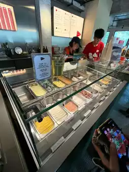 You can try whatever flavours they have before you decide to buy! And I choose Bacio (Little Kiss) and Yoghurt & Passionfruit!