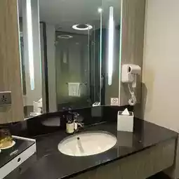 We arrived the hotel past midnight and the staff was there waiting for us and being real quick to have us checked in. What greet us was the big and clean room with very comfy bed. There are sockets everywhere near the bed and desk. The hotel amenities was comprehensive and lighting was great. The best part- the shower has great pressure and water was hot enough which was was we needed.