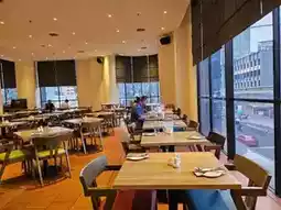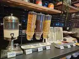 Hilton gold and diamond member have reserved seats near window, but no other perks. It might be better to get breakfast elsewhere or order food online. However, if you are too hungry and need to hurry, you can choose to stay and eat here.