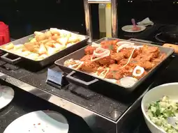 The lounge offers a wide variety of options, from cold meals like salads to hot meals like meat, fish, and curry.