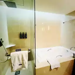 I have booked for the Club access king room on high floor at Westin Hotel Kuala Lumpur. My room is on level 32 floor and the club lounge is on level 3. There are a total of 4 lifts here and there is not much wait time, all the lifts are working. The room is spacious and it has a bathtub with separate shower facility. The room is lovely and it overlooks toward KL Tower and Bukit Bintang shopping street. It also come with a fridge and coffee machine. I did not manage to locate the HDMI connector to the TV and there is a signage saying not to move the TV.