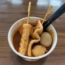 Savor the simple and delicious Oden offerings at Family Mart, with options like Tomyum soup base, cheese tofu, fish cake, eggs and udon noodles.