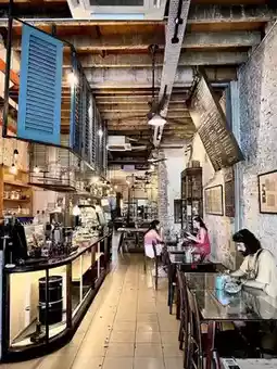 The atmosphere is good, I like the taste of music and it's not as busy as the cafe. A bit expensive because it is located in a tourist area. I ordered spaghetti but the spaghetti should have been cooked longer (it was a bit difficult to chew...) My friend ordered the burger, it was delicious and the portion was large for small eaters. This is a great place to meet friends.