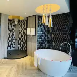 The bathroom was huge and we had both a XL sized bathtub and XL sized rain shower.