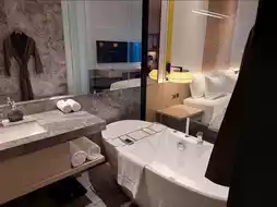 The rooms at EQ Kuala Lumpur are tastefully designed, offering a comfortable and modern retreat. The well-maintained amenities and cozy ambiance, coupled with panoramic city views from large windows, contribute to a pleasant stay.