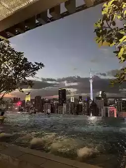 Infinity pool, gym, sky bridge, sauna, and sky deck with the view of Kuala Lumpur and specifically Bukit Bintang