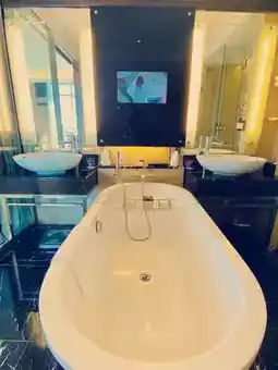 the ambiance of the hotel is sooooooooo relaxing and beautiful especially at night. when you walk into the hotel you can smell a very nice scent and they have beautiful guest toilet tooo.