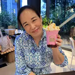 The signature Bunga Raya city shake, inspired by the national flower of Malaysia, the Hibiscus, features hibiscus jelly topped with vanilla frozen custard blended with dragon fruit and gula melaka, topped with whipped cream, coconut crumble and melaka drizzle.