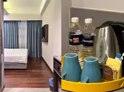 The dressing table is also very practical. Bathroom equipment is separated into dry and wet areas.