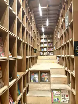 ✨The interior of the shop is bare concrete in a loft style, with high ceilings and wooden bookshelves throughout the shop. The bookshelves are high, short, and long, alternating, making it look like a mysterious maze. Since the shop was converted from a cinema, there are stairs that gradually increase throughout the shop.