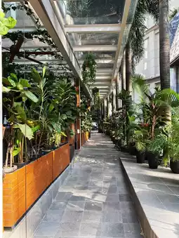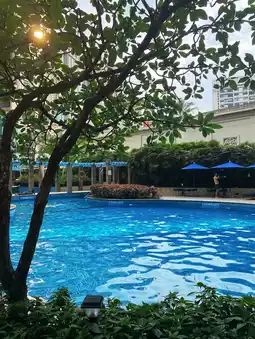 2️⃣ You will be amazed with its tranquil environment even it is surrounded by the street with a lot of noises. The hotel rooms are fully soundproofed and you wont be annoyed by those noises even you are chilling by the swimming pool. Yet, it is a scenic resort-like pool with trees around and many sun-loungers are prepared.