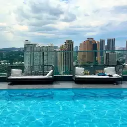 The hotel's rooftop bar is the perfect place to relax and unwind, where you can overlook the panoramic view of the Petronas Twin Towers in Kuala Lumpur and enjoy delicious snacks, premium champagnes, wines and signature cocktails. 🍸🌃 In addition, the hotel's fitness center allows you to stay energetic and healthy at any time. 🏋♀
