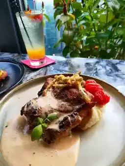We ordered the seared US scallops, which were large and very fresh. For the main dishes, we chose the Australian Lamb Short Ribs and the summer grilled chicken. To end the meal, you must try their "Above the Clouds" tiramisu dessert.