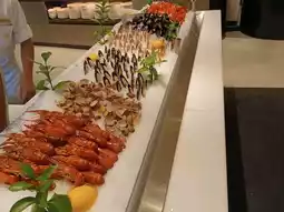 Was too engrossed eating. Still.as buffet in town. Fresh Oysters, seafood, lobsters were great. Brother ate 2 dozen oysters. Meats were good. Nieces enjoyed the indian food, pastas and pizzas. I loved the hummus and pita bread. The double boiled soup was great. Deserts were delicious.