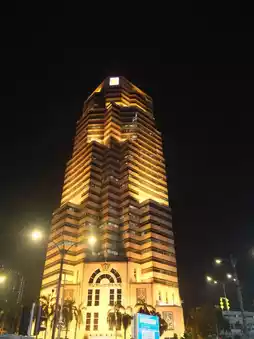 These are twin towers that were recently built. The top is an office building. During the day, it looks very ordinary, but at night, the lights are turned on for us to see. It is very beautiful. It is considered the highlight of this city.