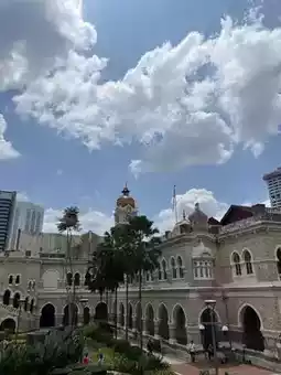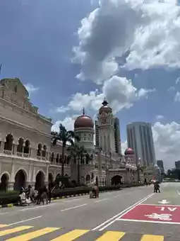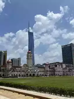 The exotic architecture of the Sultan Abdul Samad Building in Kuala Lumpur is located in front of Merdeka Square, making it a perfect spot to take photos with the green lawn.