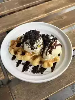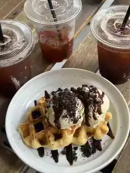 The Americano had a rich flavor without any acidity, and the croffle was topped with ice cream and cookies and cream. Although the ice cream melted quickly due to the hot weather, the croffle was sweet and perfect for a quick sugar fix.