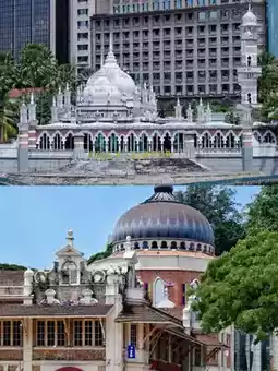 Next, we come to the Kuala Lumpur Railway Station. The railway station built in 1910 and the railway company building opposite tell the integration of Eastern and Western designs. The round corner pavilions, onion domes, and horseshoe arches they show not only represent the precipitation of history, but also the eternal elegance.