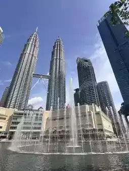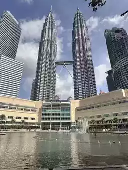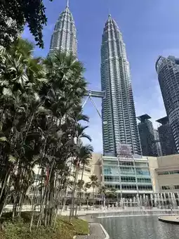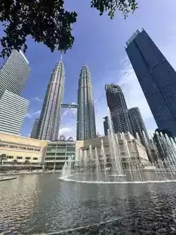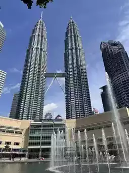 There’s a big man made lake with fountains and plenty of seating around the area, the seats directly opposite the towers offer the best spot to get photos with the whole towers in.
