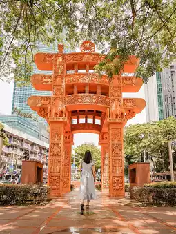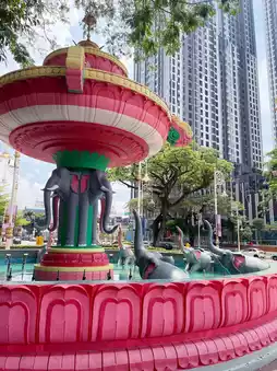 The colorful fountain and gates at the roundabout are also Indian, so I took a picture without thinking 📸