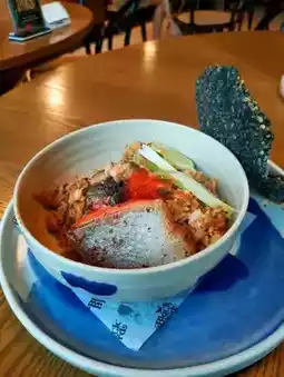 For dinner, I had their fried rice with grilled fish, which was flavorful and filling. As the night progressed, I indulged in a dessert—waffles topped with coconut ice cream and mango slices. It was a great way to wrap up a night full of good food and drinks.