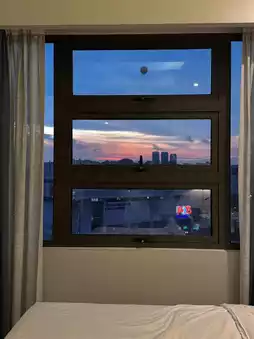 The area is also surrounded by delicious food delivery options. One of the best features is the availability of various charging ports—each room has two, so you won't need an adapter. The window views are stunning too! With a price just over 100 per person, the value is unbeatable.