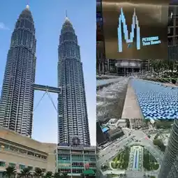 The KLCC skyline comes alive at night, with its iconic twin towers illuminated in a dazzling display. The lights reflect off the surrounding cityscape, creating a breathtaking scene that lights up the sky.