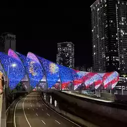Nearby, the Saloma Bridge adds a stunning touch to the nightscape. Its colorful lights twist and turn, connecting both sides of the city in an artistic glow. The bridge is an architectural wonder, glowing like a beacon.