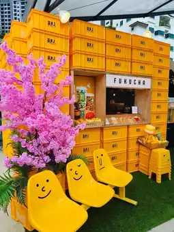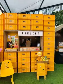 Exploring the market was such a treat. From traditional cheongsams to unique handmade crafts, every stall had something interesting to offer. I couldn’t resist stopping by the Fukucha stall for a refreshing drink—its playful setup and cheerful vibes instantly drew me in.