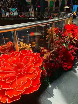 I loved how the mall combined traditional elements, like red lanterns and floral arrangements, with modern touches. One of the highlights was a wall of vivid blooms and decorations, perfect for photos and capturing memories of the festive vibes.